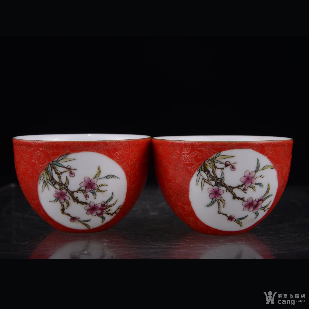 拍卖>瓷器>民国>民国 轧道粉彩开窗花卉纹卧足杯>