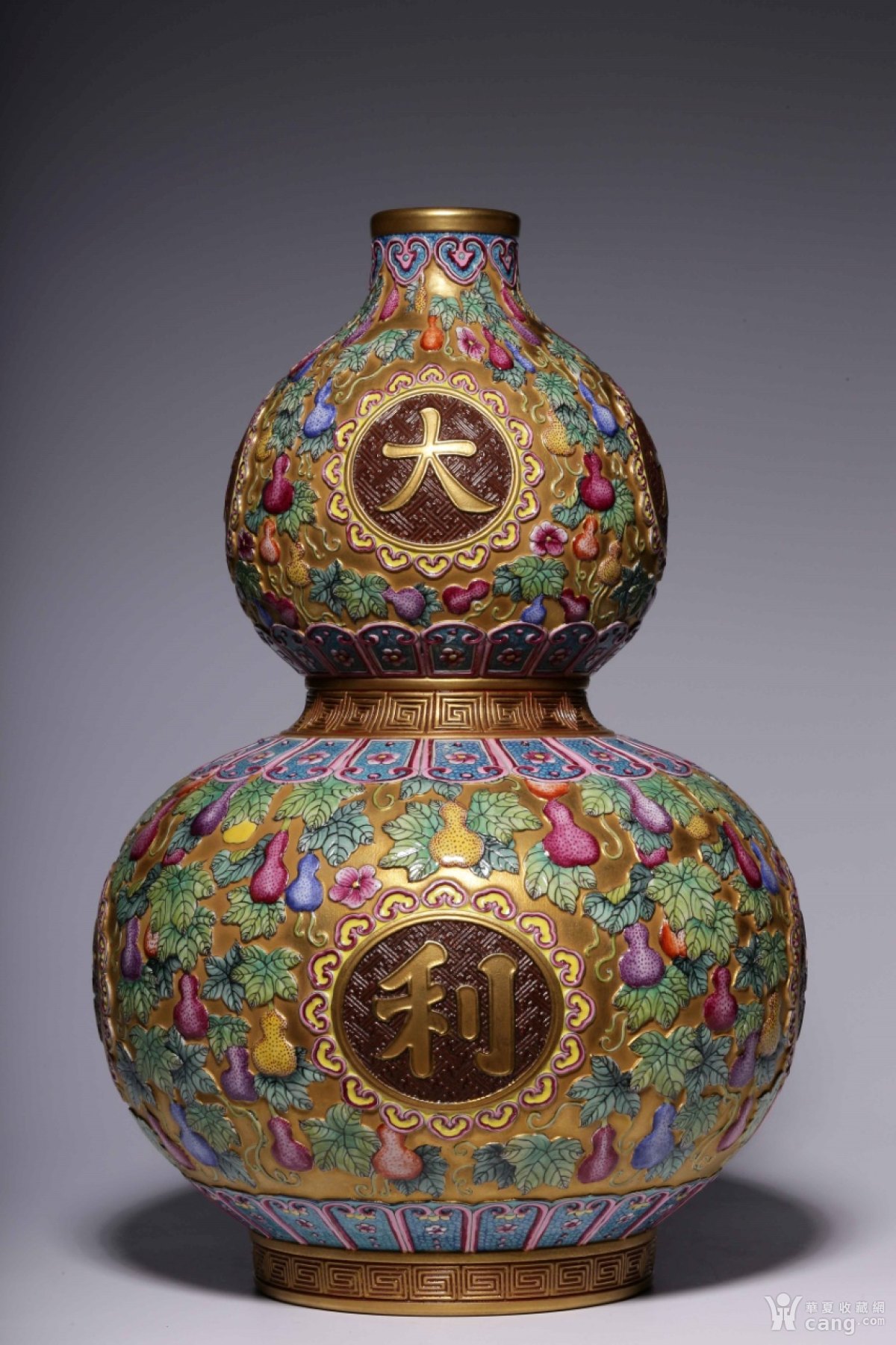 “大清乾隆年制”金彩地粉彩福禄双全图大吉葫芦瓶