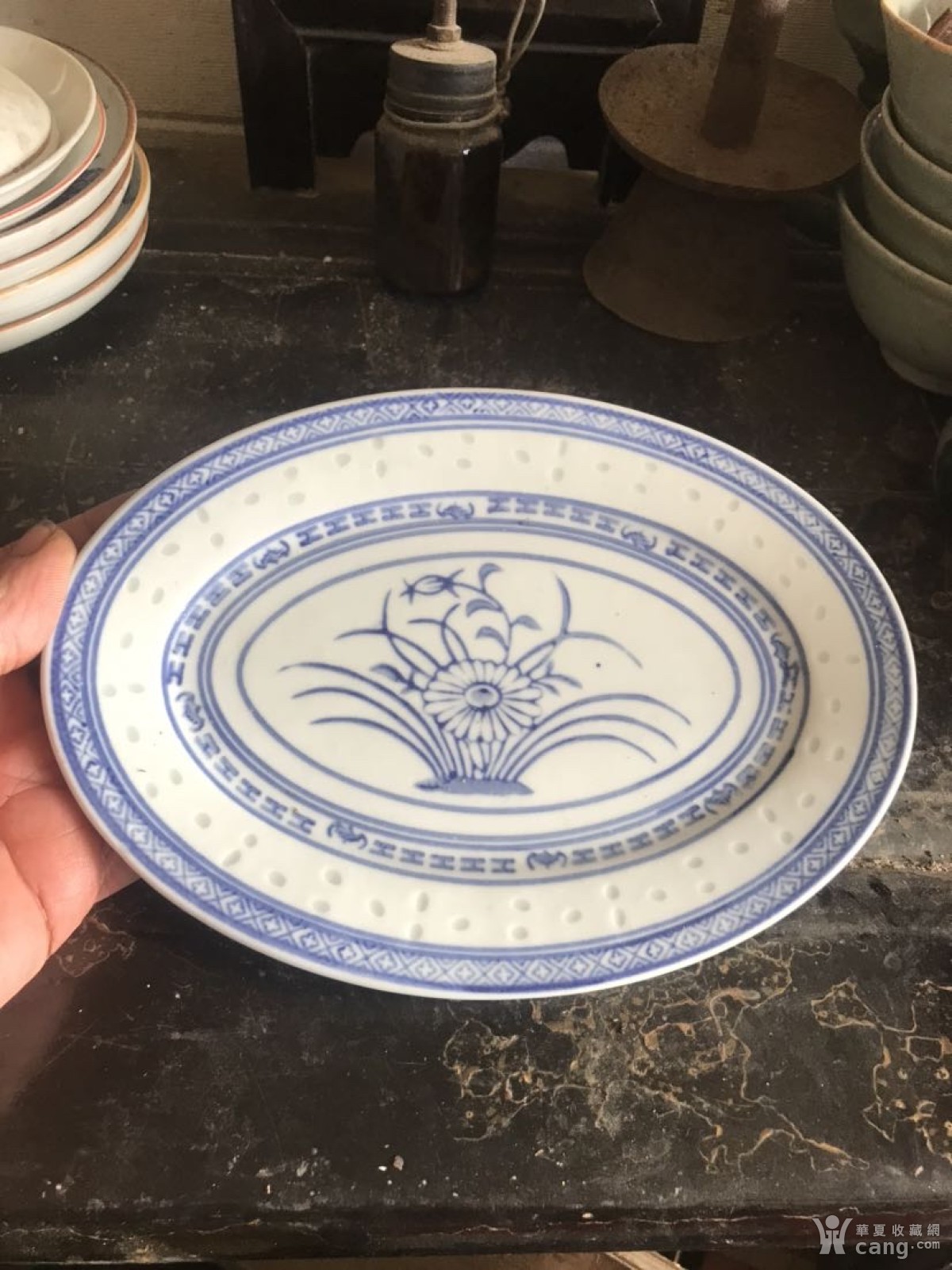 景德镇瓷青花玲珑瓷盘子一只