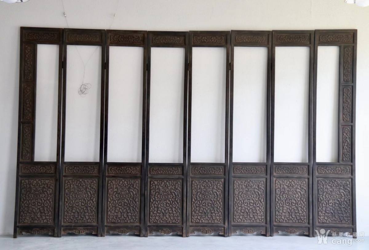 旧藏~【屏风8片】紫檀 此屏风高浮雕,雕刻二龙捧寿,雕工精