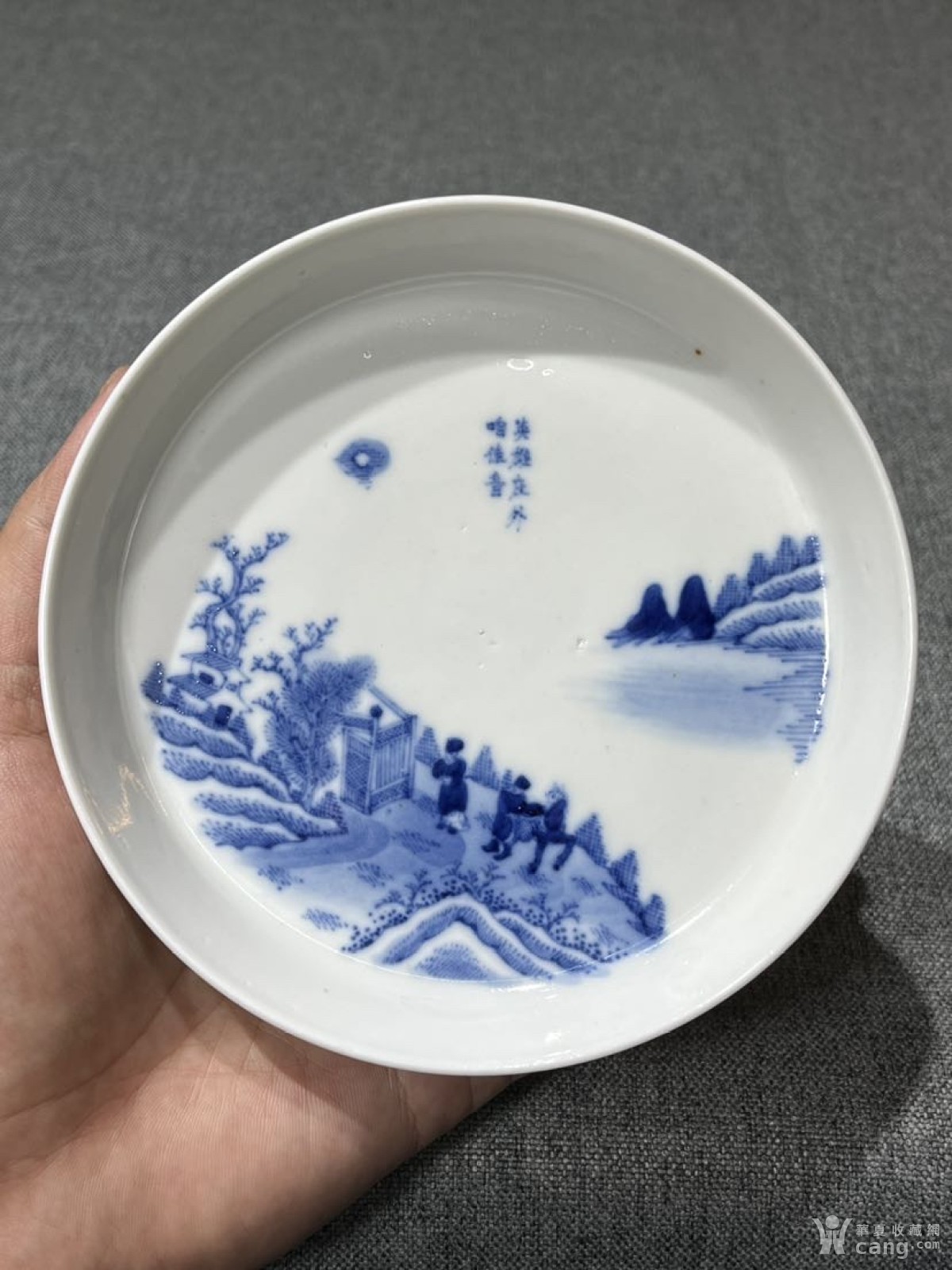 清代光绪时期青花「英雄庄外咱佳音」文房镗锣洗/杯托/壶承