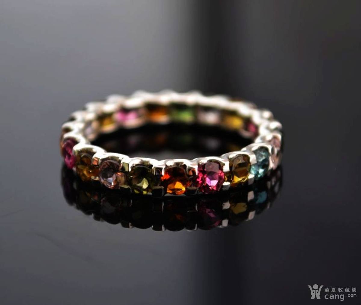【现价再打8折特惠】混色多彩小圆形碧玺镶925银戒指