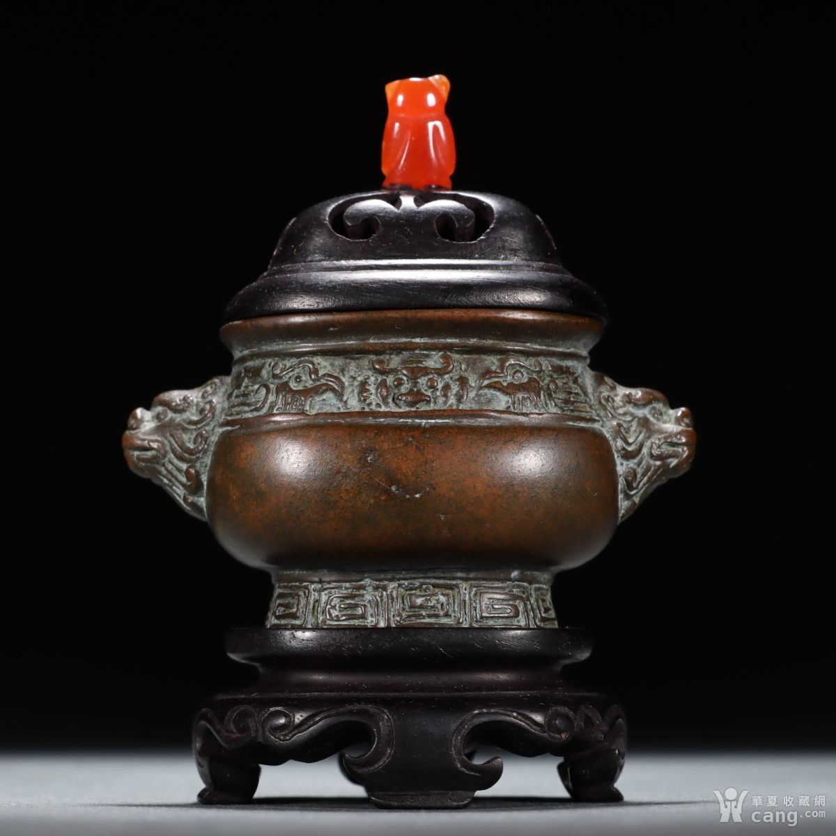 旧藏 铜胎凤鸟纹狮耳香薰炉