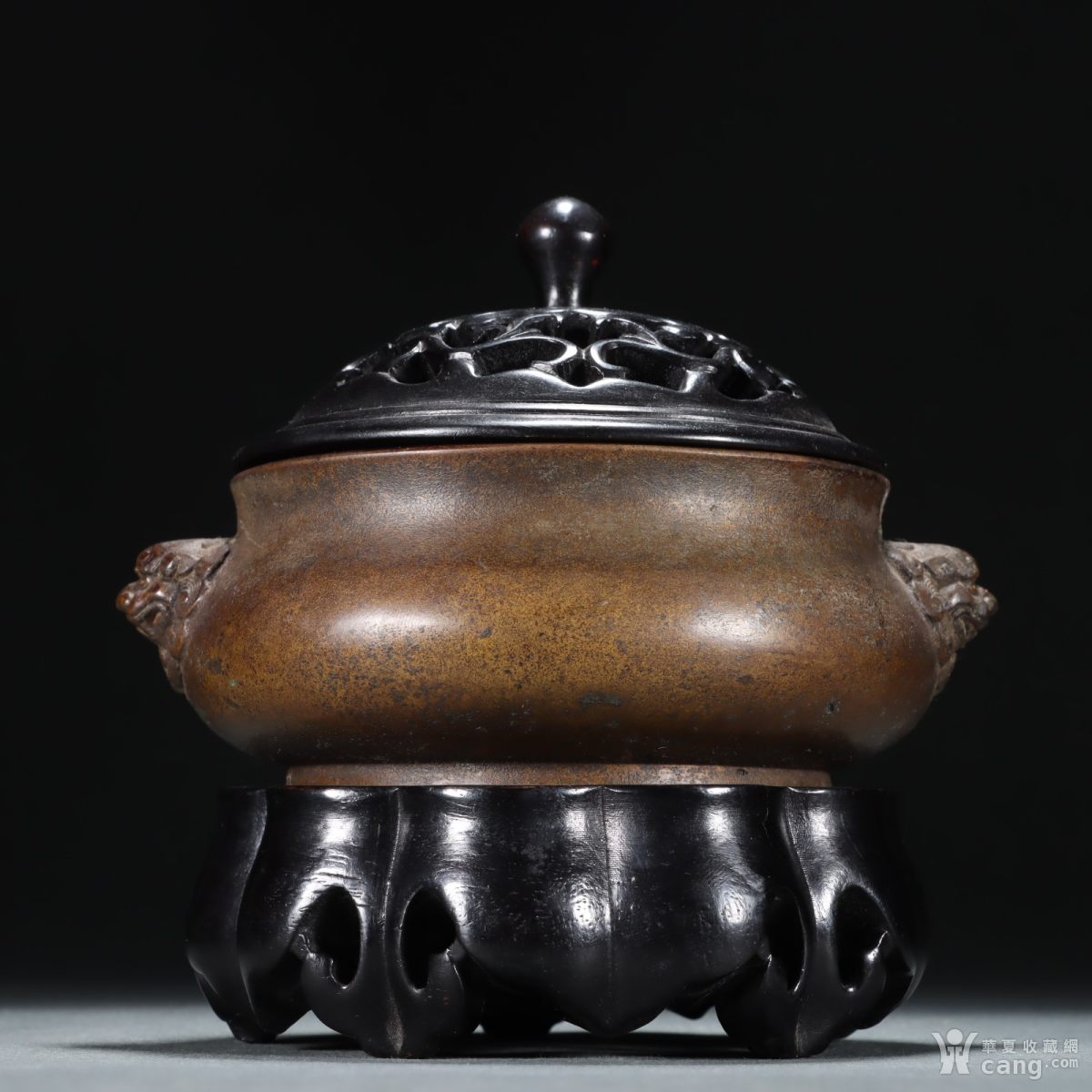 永世之宝款 老铜胎双狮耳香炉