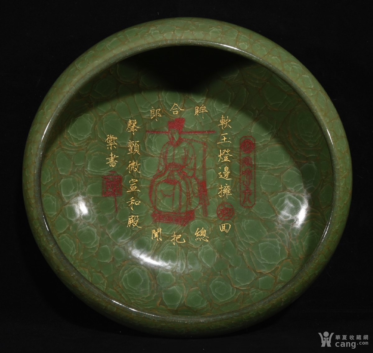 宋官窑冰裂纹绿釉刻字描金题诗纹洗4