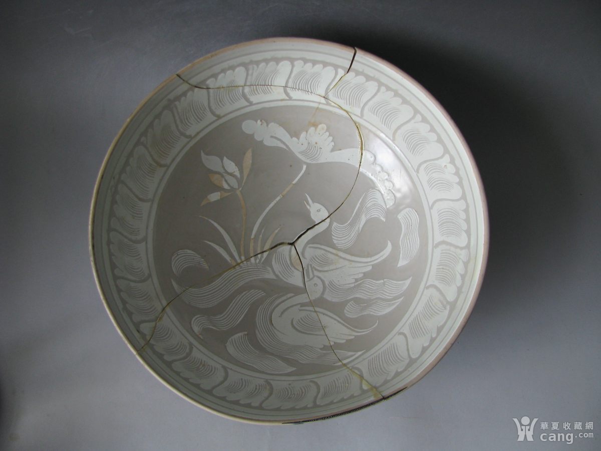 金代定窑剔刻荷塘浮鸭纹大碗标本