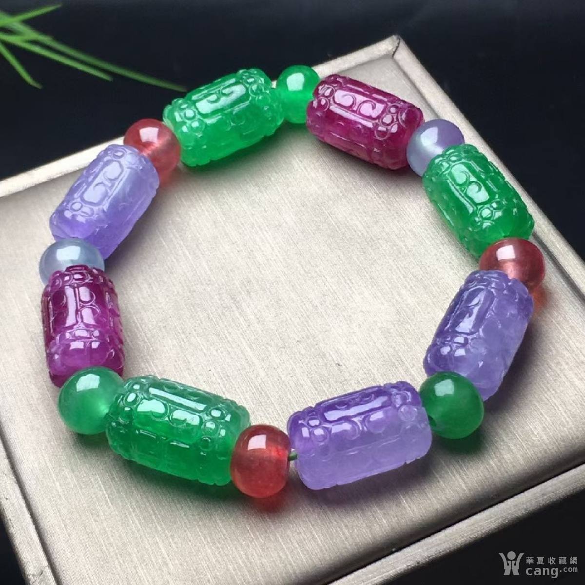 冰彩翡翠雕花筒珠手串,
