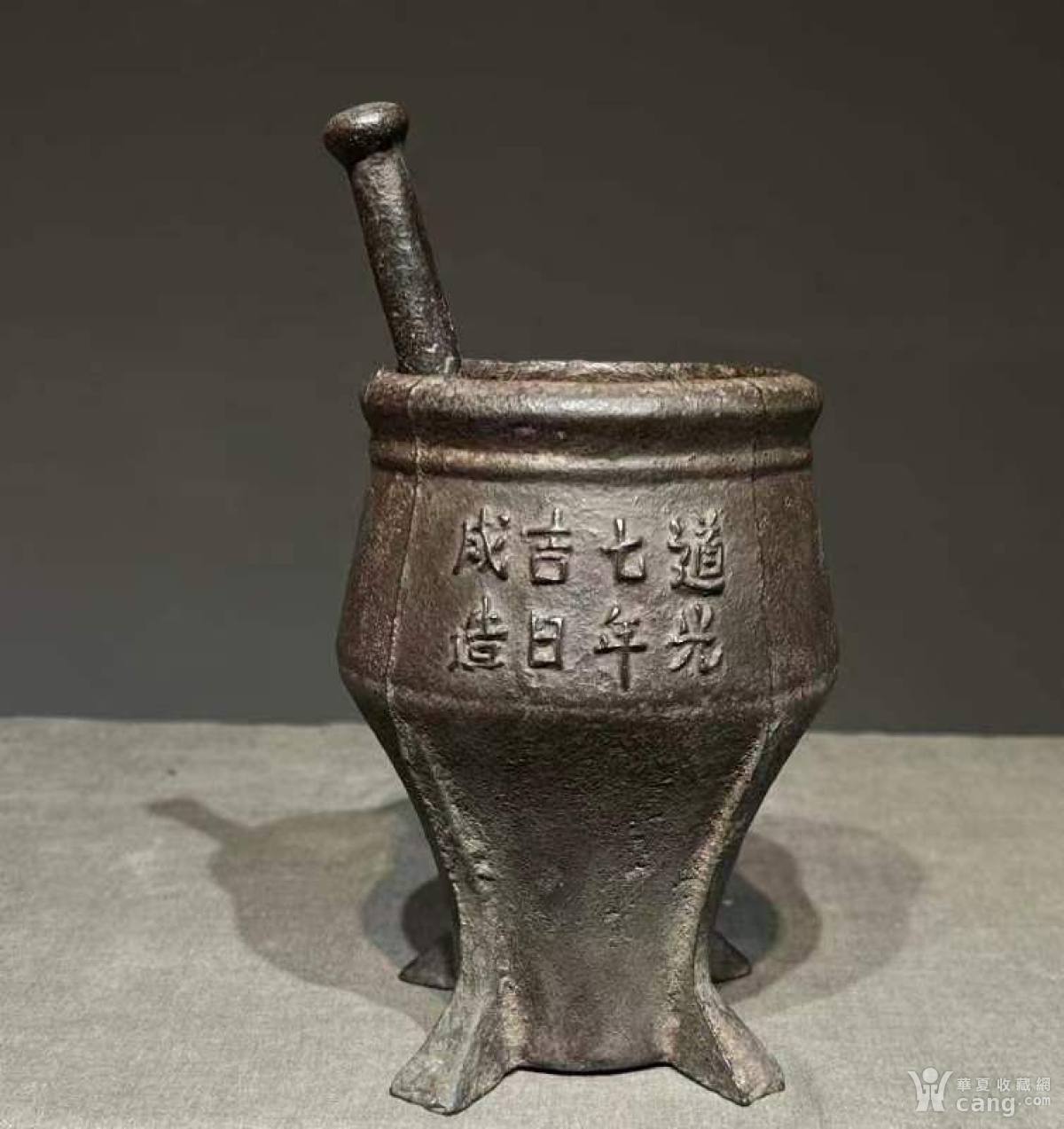 中医药器具 捣药罐 全品完整 有清代落款 皮壳老辣 铁制