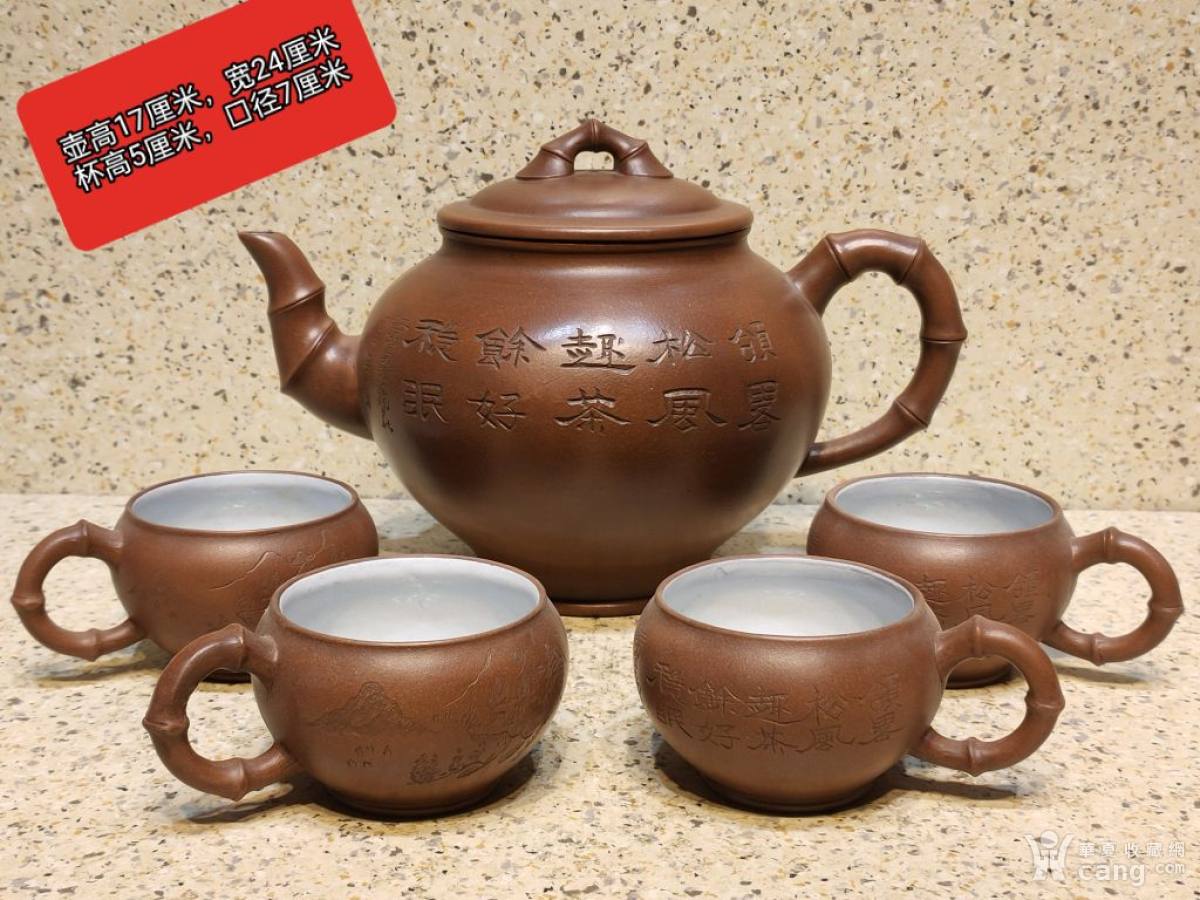 宜兴合作社出品,套装紫砂壶,壶内挂釉,造型独特,外观精美,做