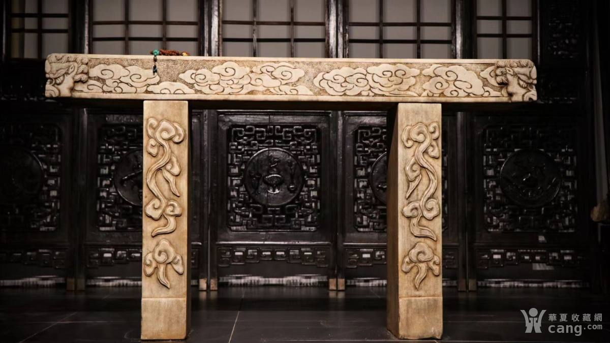 汉白玉石桌 尺寸:长1.45米高83宽34厘米 制式古朴,三