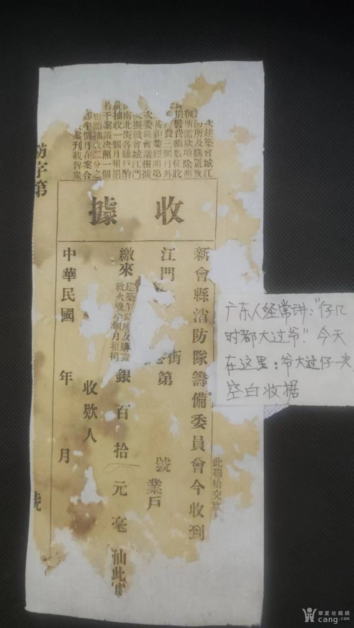 民国新会县收江门各街道筹建消防队购置消防设备款(空白收据)收