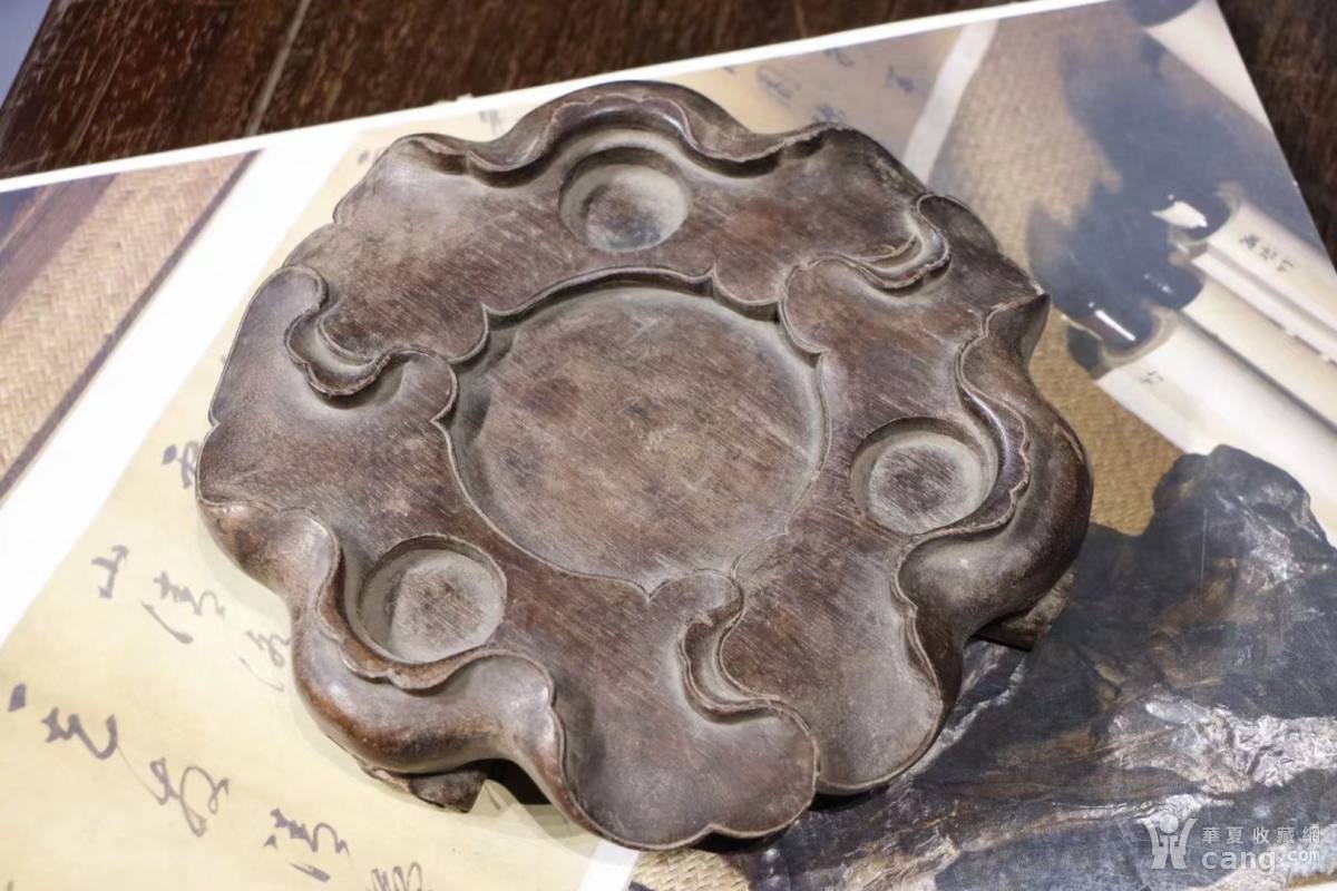 铁力木荷叶纹【香炉座】; 清代铁力木雕三足
