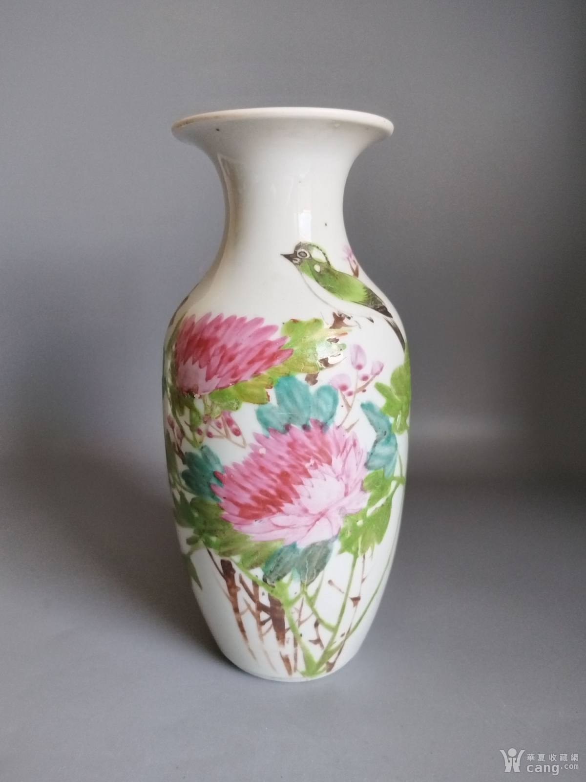 晚清浅降彩花鸟小罗汉瓶 全品