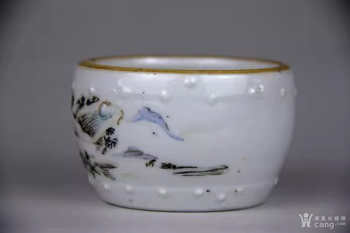 清代同治浅绛彩鼓型陶瓷水盂