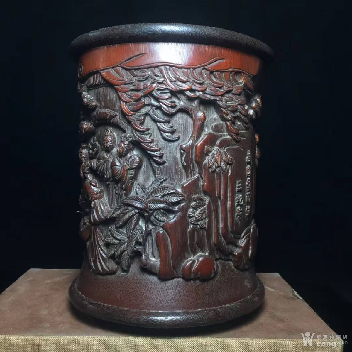 竹雕【史湘云醉酒】笔筒,高15公分,宽15公分
