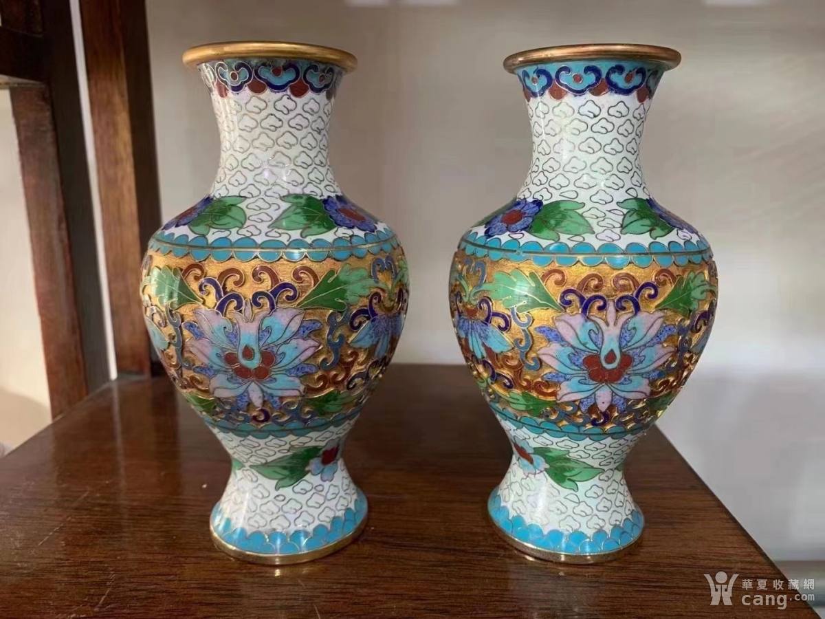 创汇期景泰蓝鎏金花卉赏瓶一对,