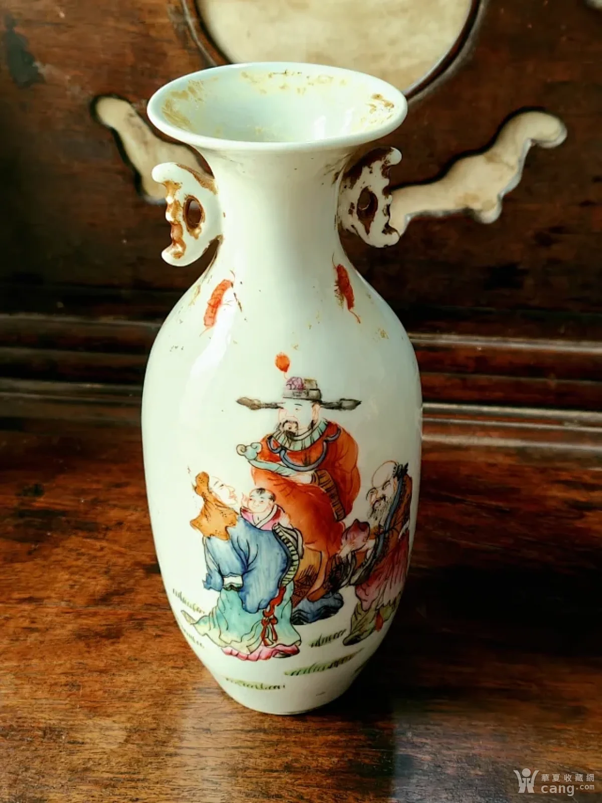 光绪年制,粉彩福禄寿花瓶,尺寸高22厘米,包老保真
