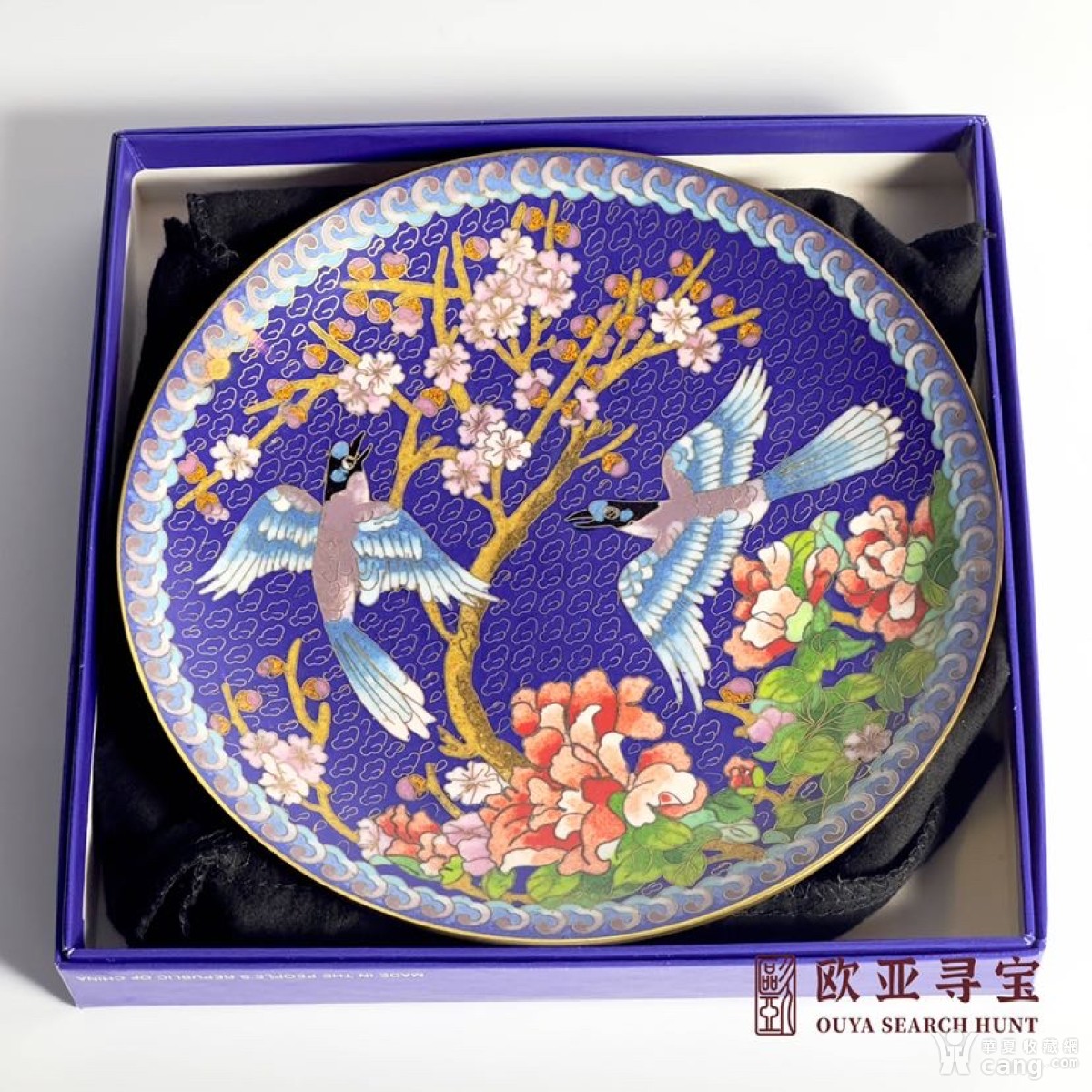 欧洲回流中国景泰蓝名家姜学炳作品铜胎掐丝珐琅【青翼鹊】盘