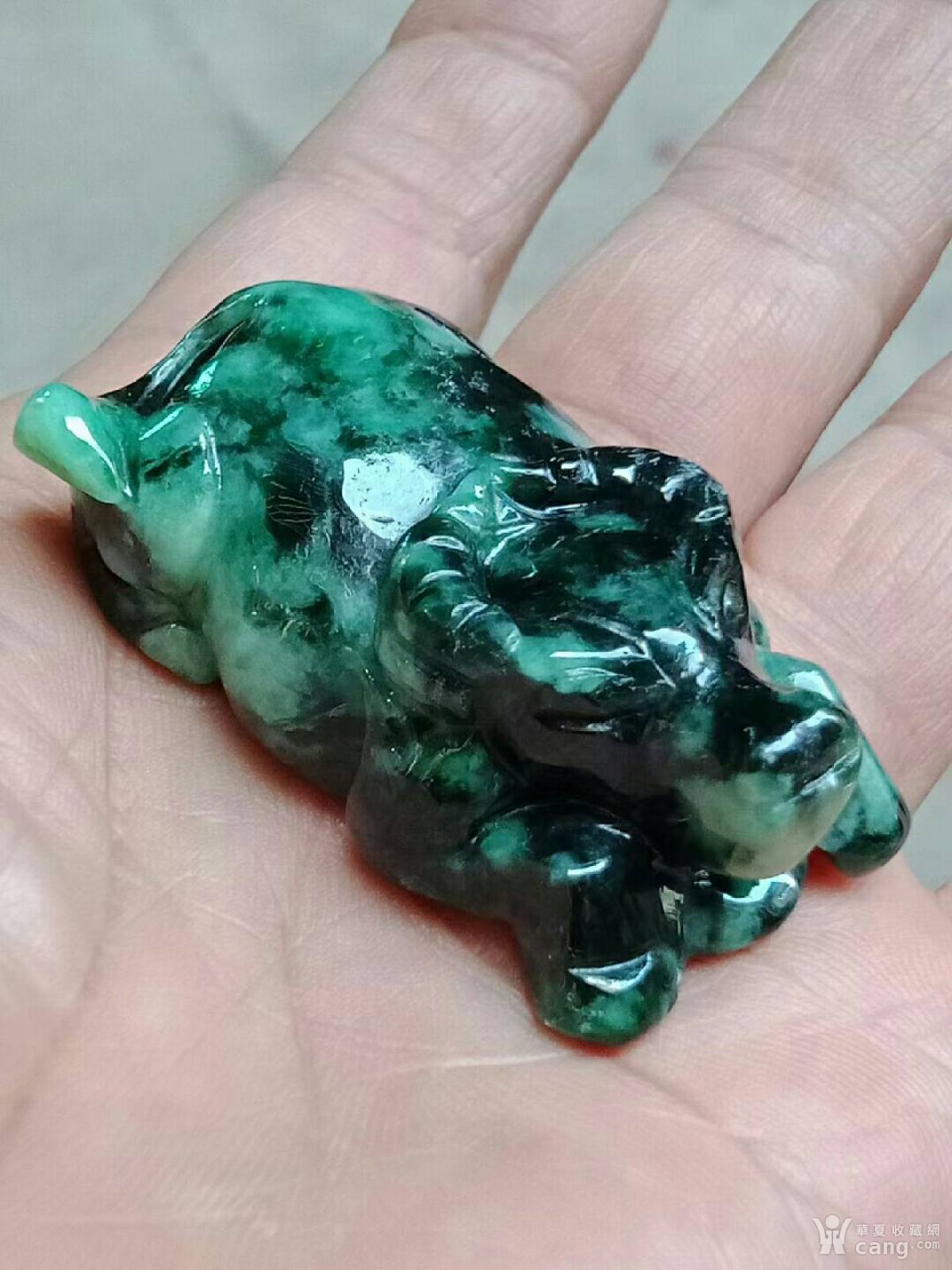 缅甸翡翠R55569-2A阳绿牛气冲天摆件(送证书)