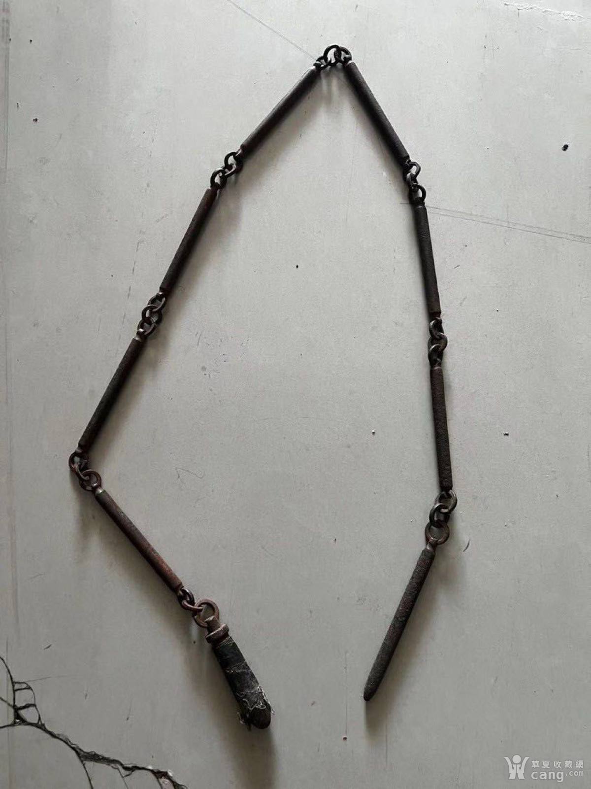 清代,铁制兵器“九节鞭”一套,造型独特,皮壳包浆浑厚。尺寸如