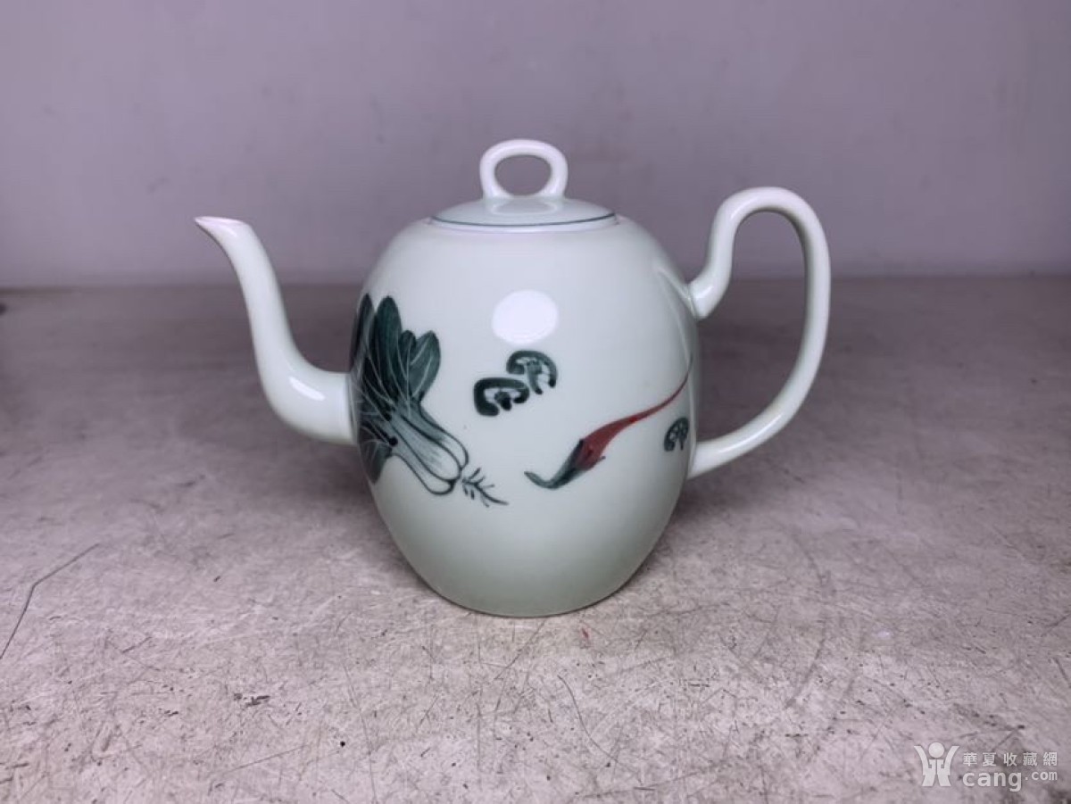 七八十年代青釉釉下彩青菜萝卜茶壶