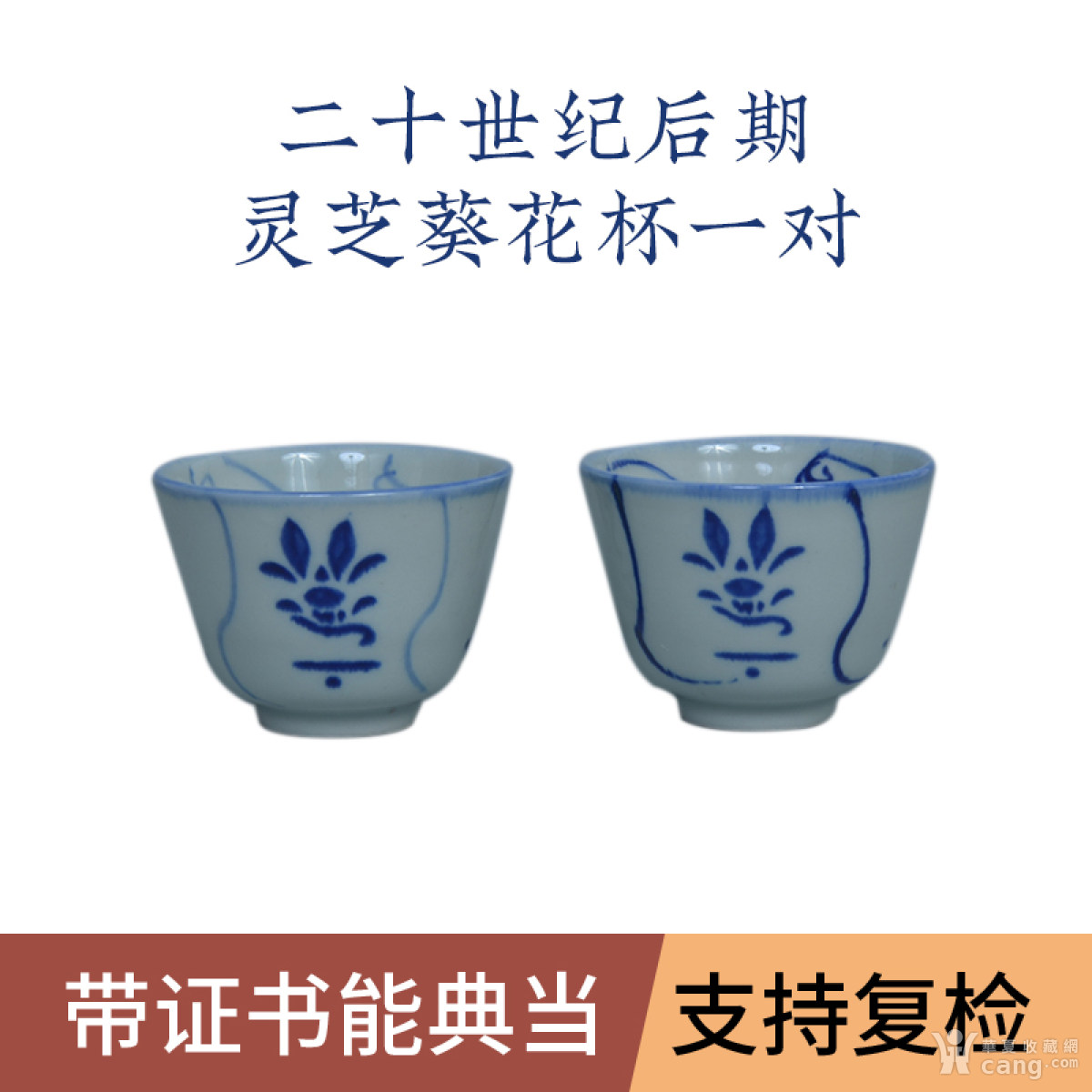 【保真能典当】二十世纪后期 灵芝葵花杯一对