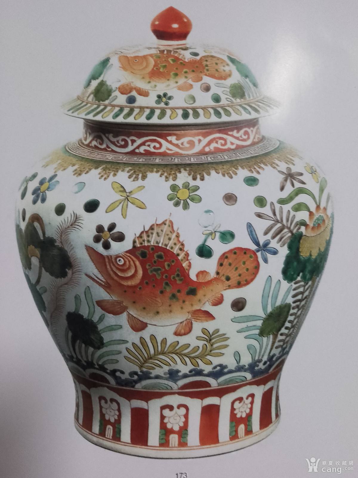 嘉靖渔草纹五彩大罐,明代,官窑,高48厘米,