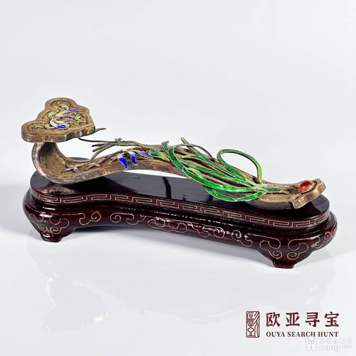 欧洲回流创汇期银鎏金烧蓝如意摆件