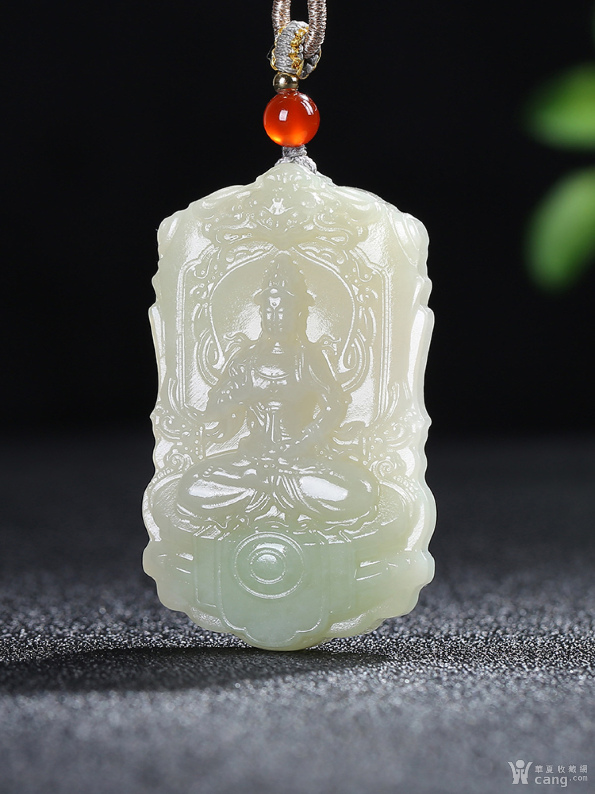 [坐禅观音]和田玉青白玉翠青观音仿古兽面挂件吊坠34.92g