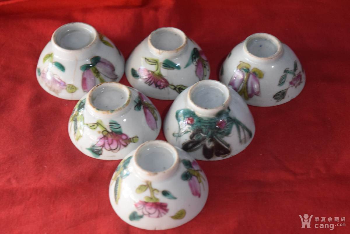 晚清同光粉彩花蝶纹小碗6只合售(包老)