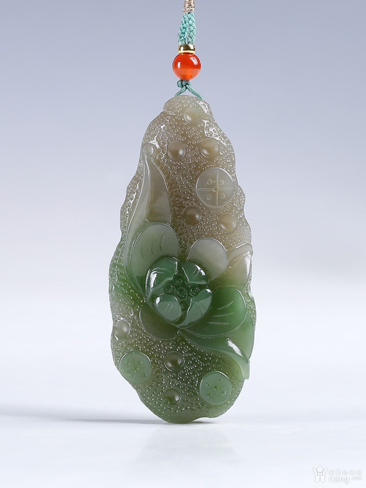 [一枝独秀]和田玉烟灰翠青莲花挂件吊坠43.56g