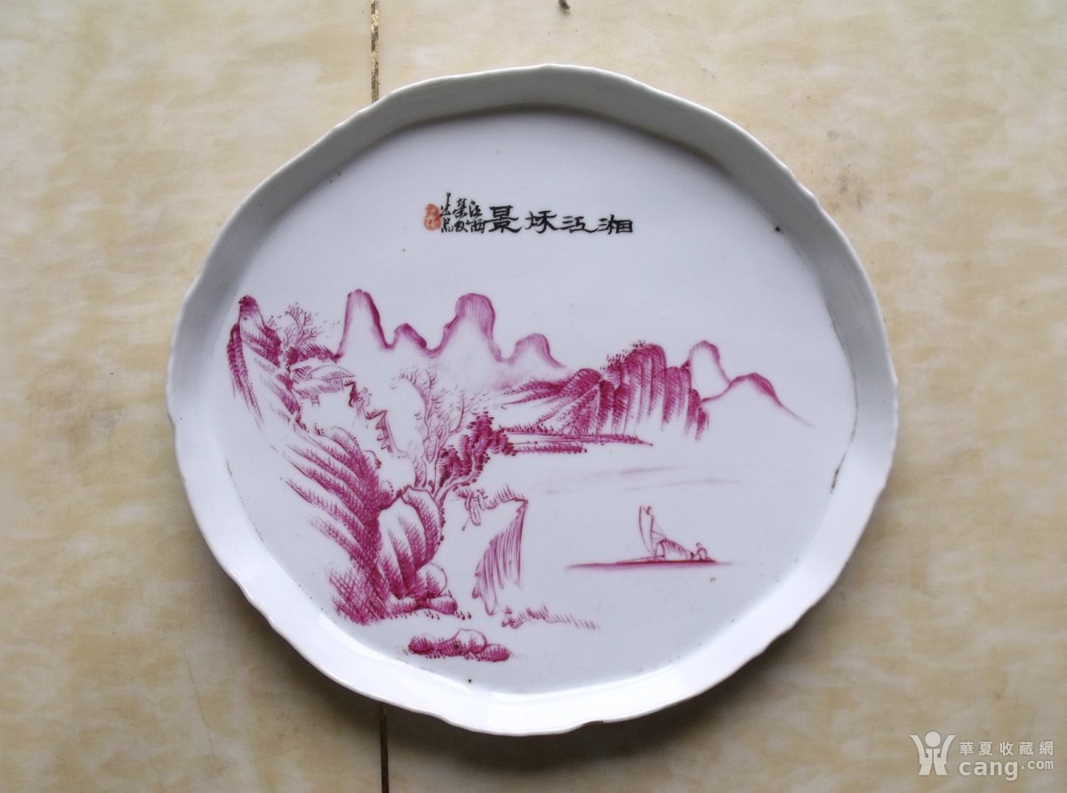 民国全美品荣发出品胭脂红山水人物茶盘一个