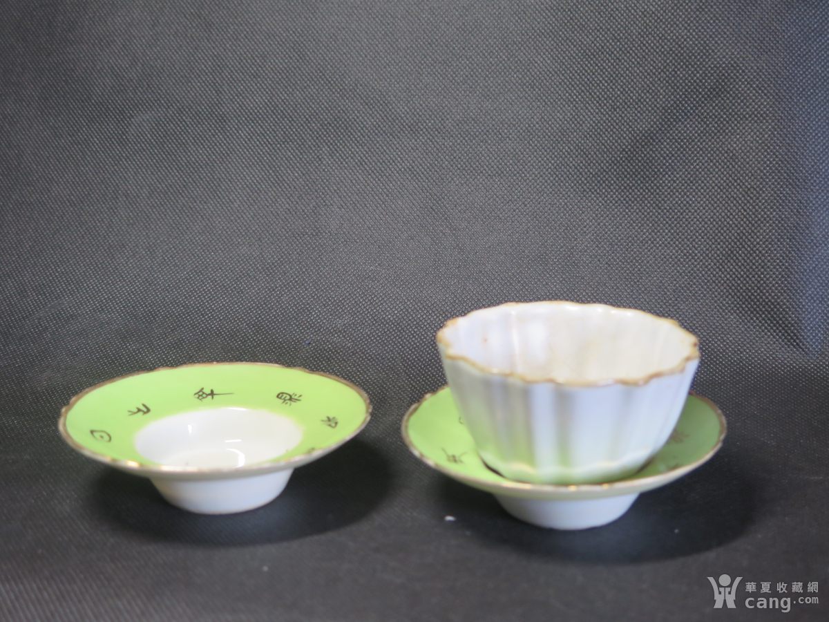 全品---民国诗文绿釉描金杯一对