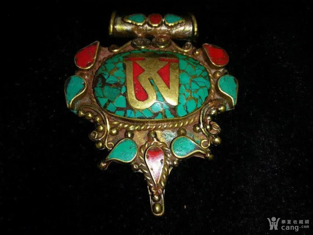 尼泊尔手工镶嵌天然红松绿松石挂件