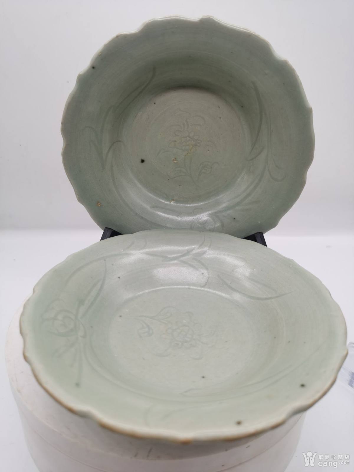 美品龙泉粉青釉刻花葵口盏托盘一对