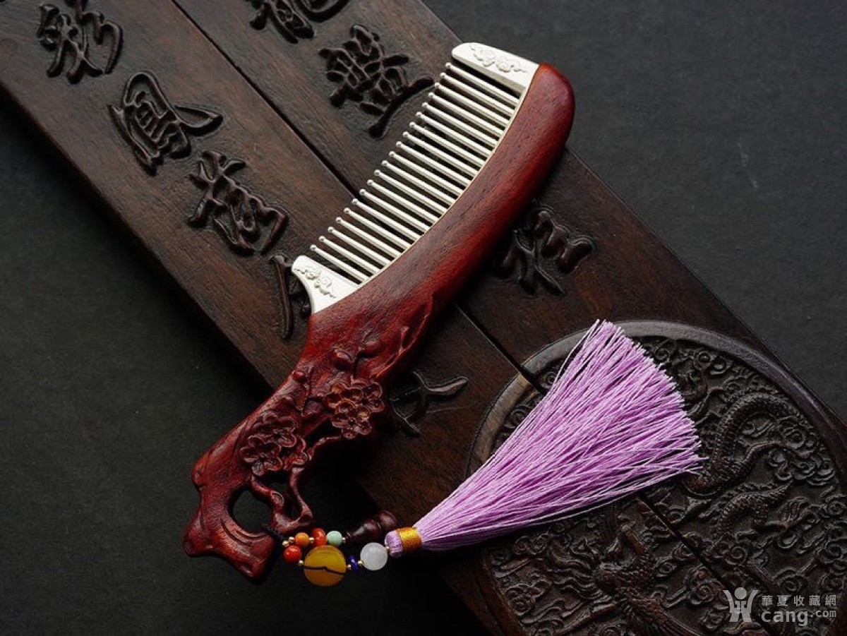 正宗小叶紫檀镶925银梳子精致雕刻“梅花”梳子