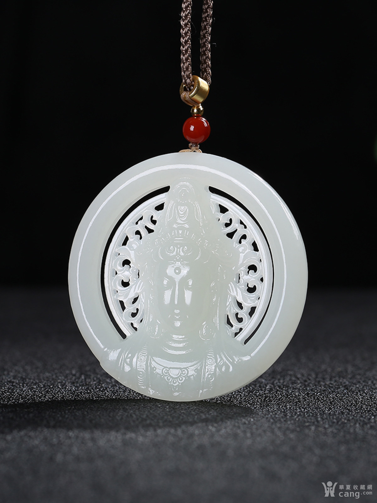 [普渡众生]和田玉白玉镂空观音头挂件吊坠g