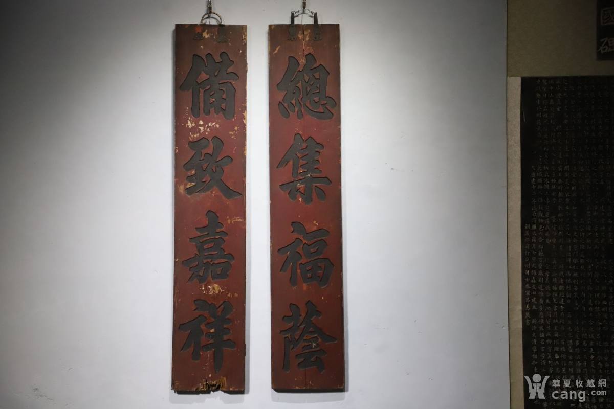 总集福荫 备致嘉祥 朱漆为底,正楷苍劲雄浑,寓意雅致