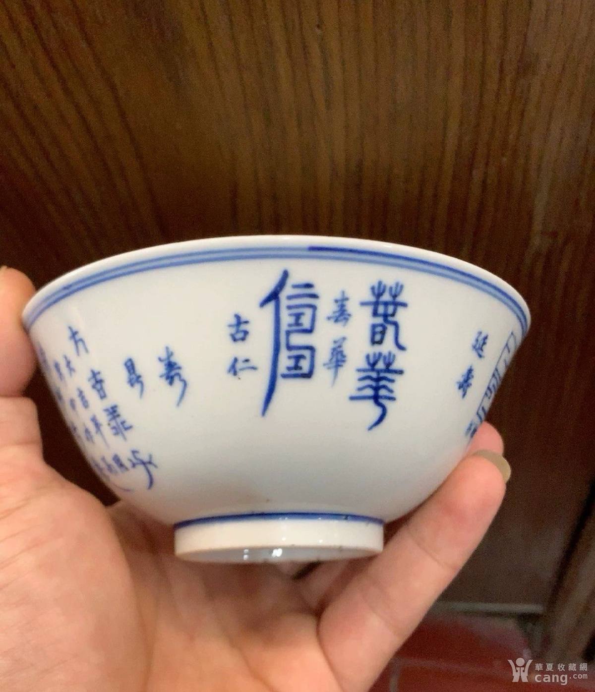江西瓷业公司官窑双圈青花博古纹碗,全品。