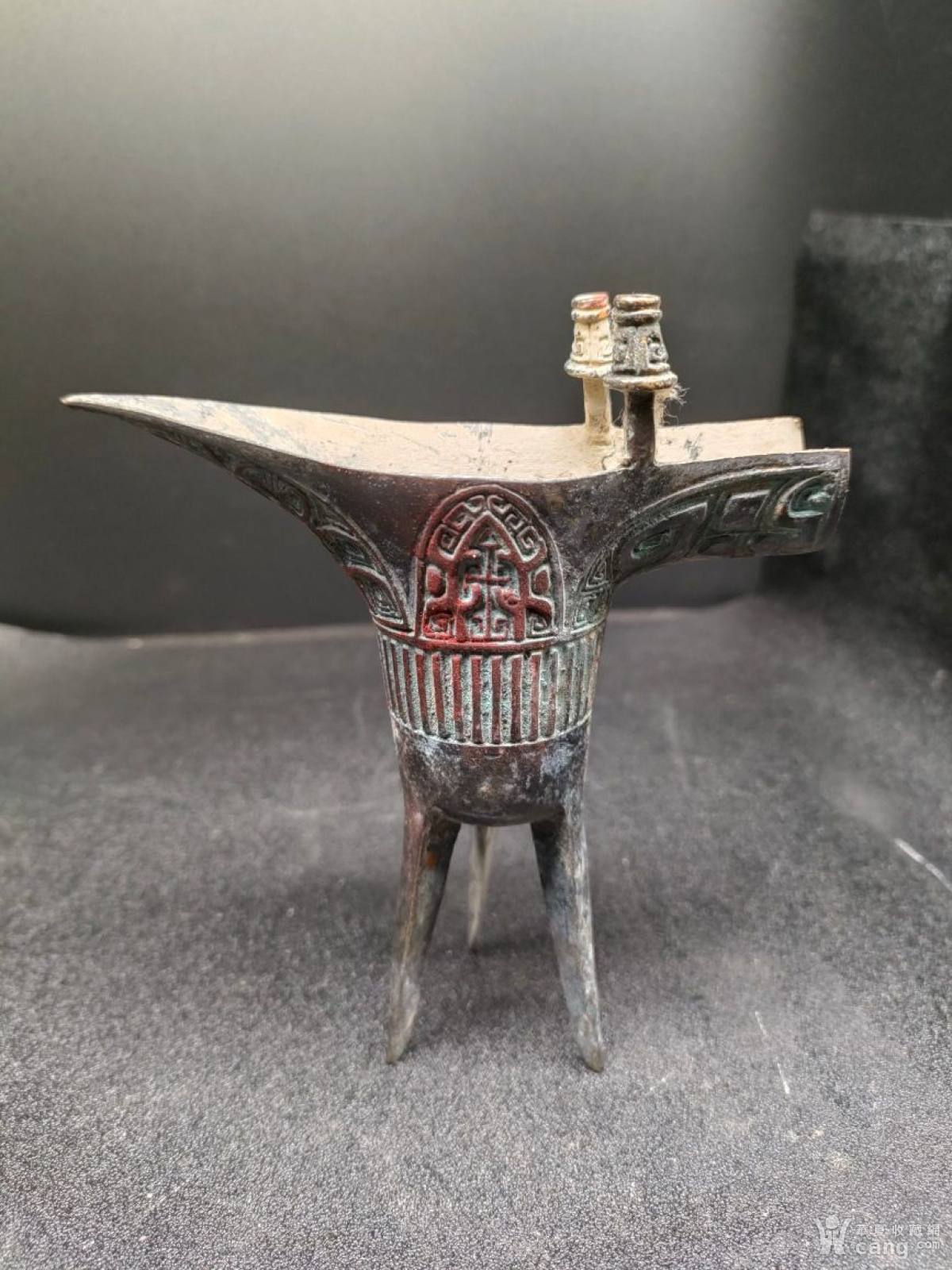 回流民国早期做的铜爵杯,包浆温润老道,做工精细。完整无缺陷,