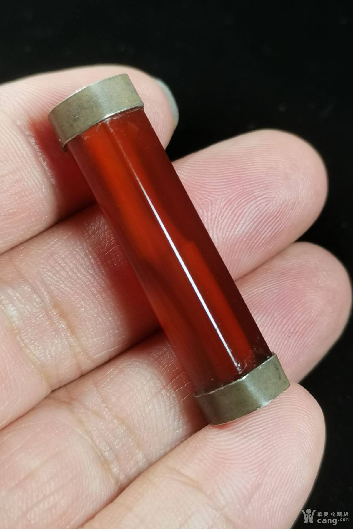 下乡收获,一枚酒红玛瑙六棱管,颜色正,光气好。品相非常难得,