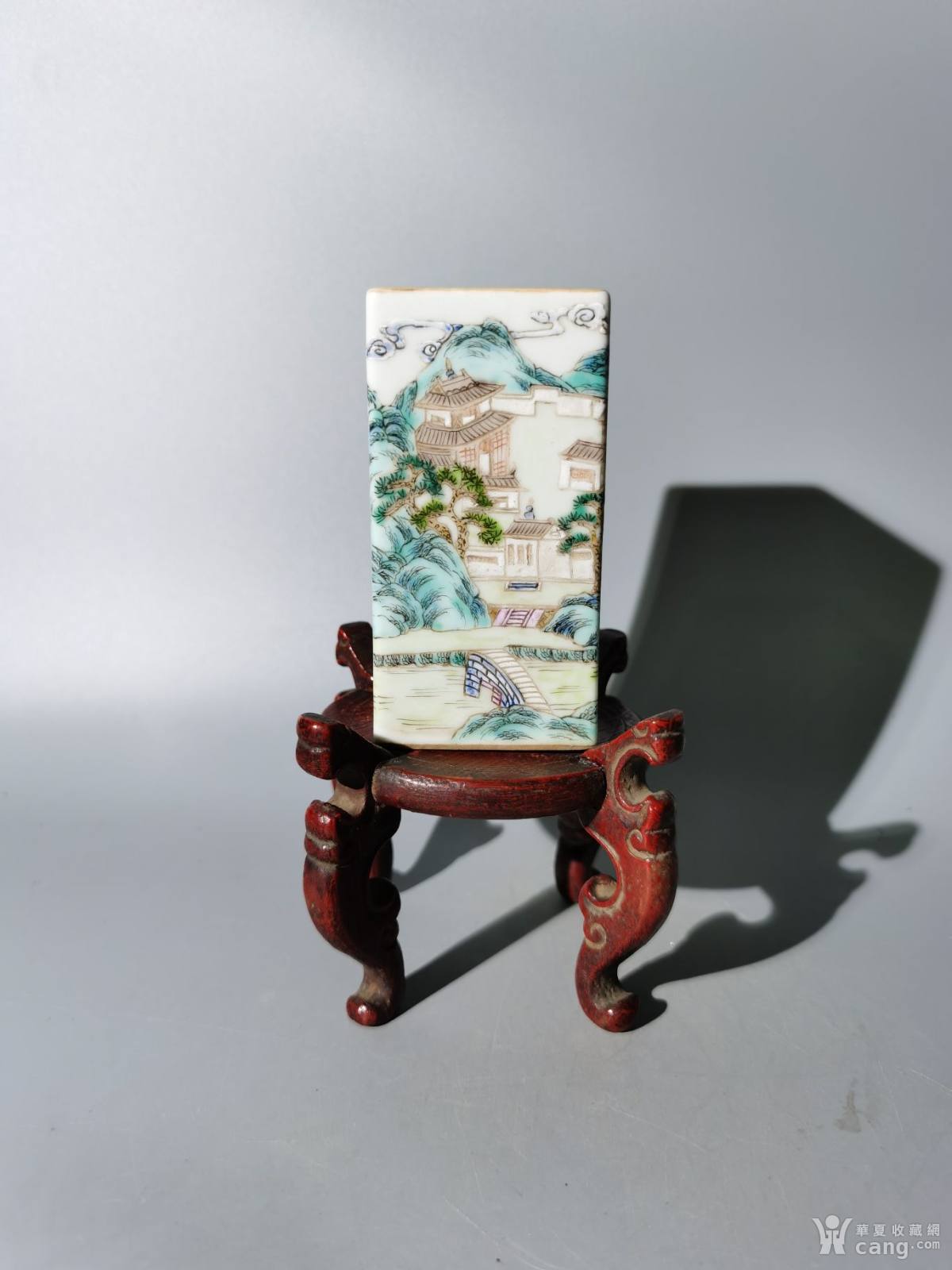 民国粉彩四方山水笔筒