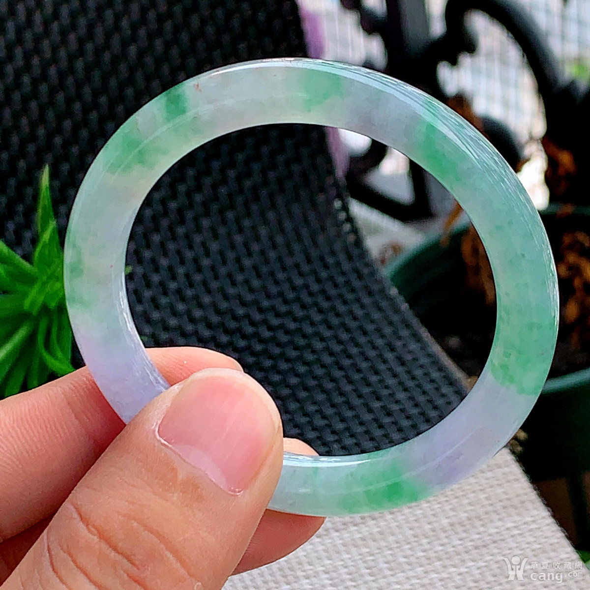 缅甸天然翡翠A货冰透水润福禄寿三彩圆条手镯52.6圈口