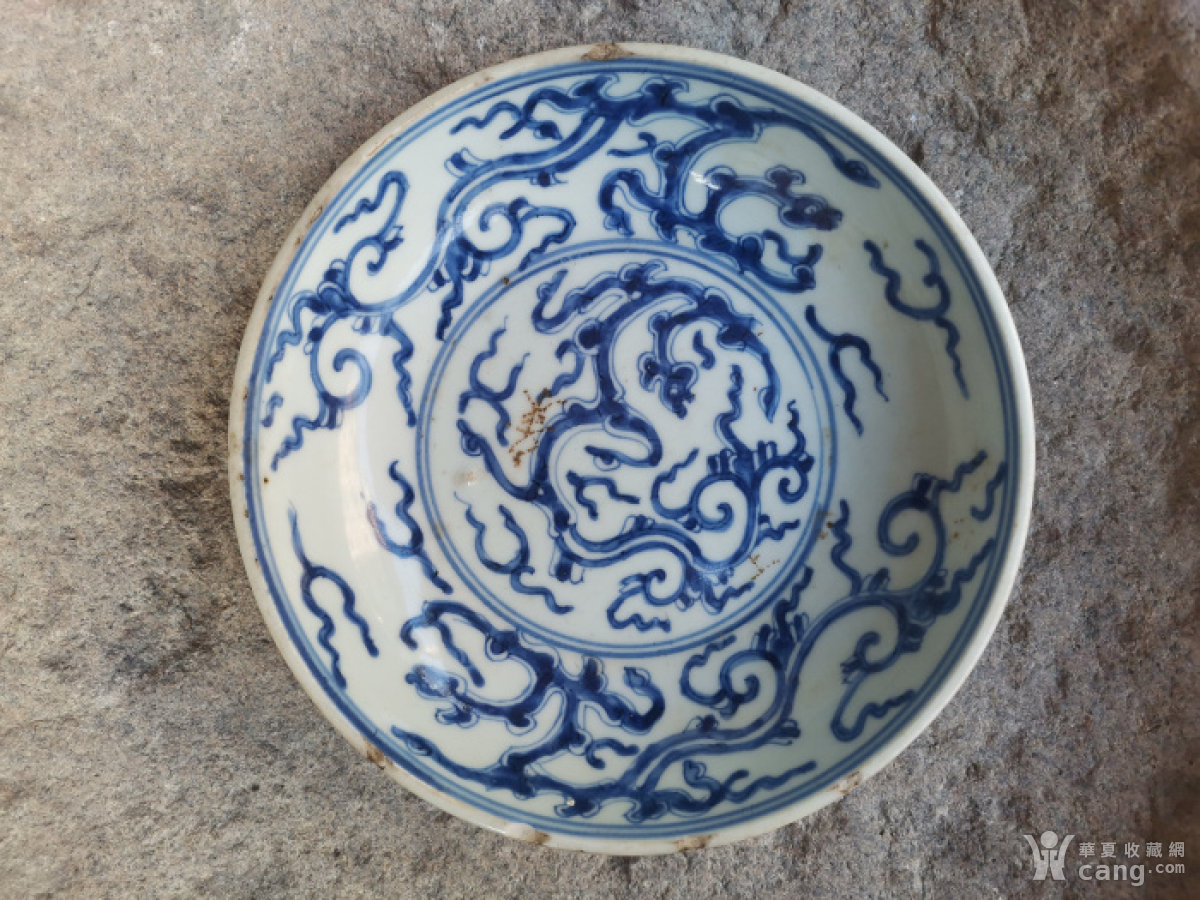 清代雍正人中三龙青花大盘一件