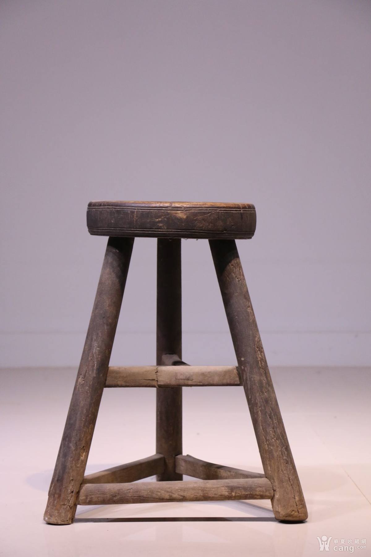 旧藏~圆凳 尺寸:高52座面直径29厘米,榉木/清代 皮