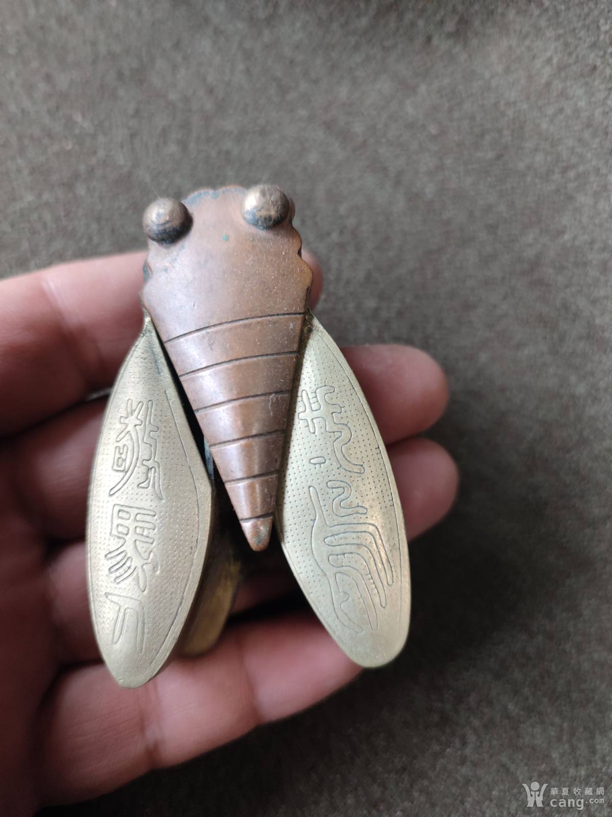 铜知了刻画文房笔添摆件