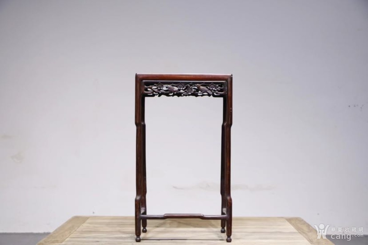 老红木——花几;精品大红酸枝花几,雕刻极其精美,皮壳漂亮,木