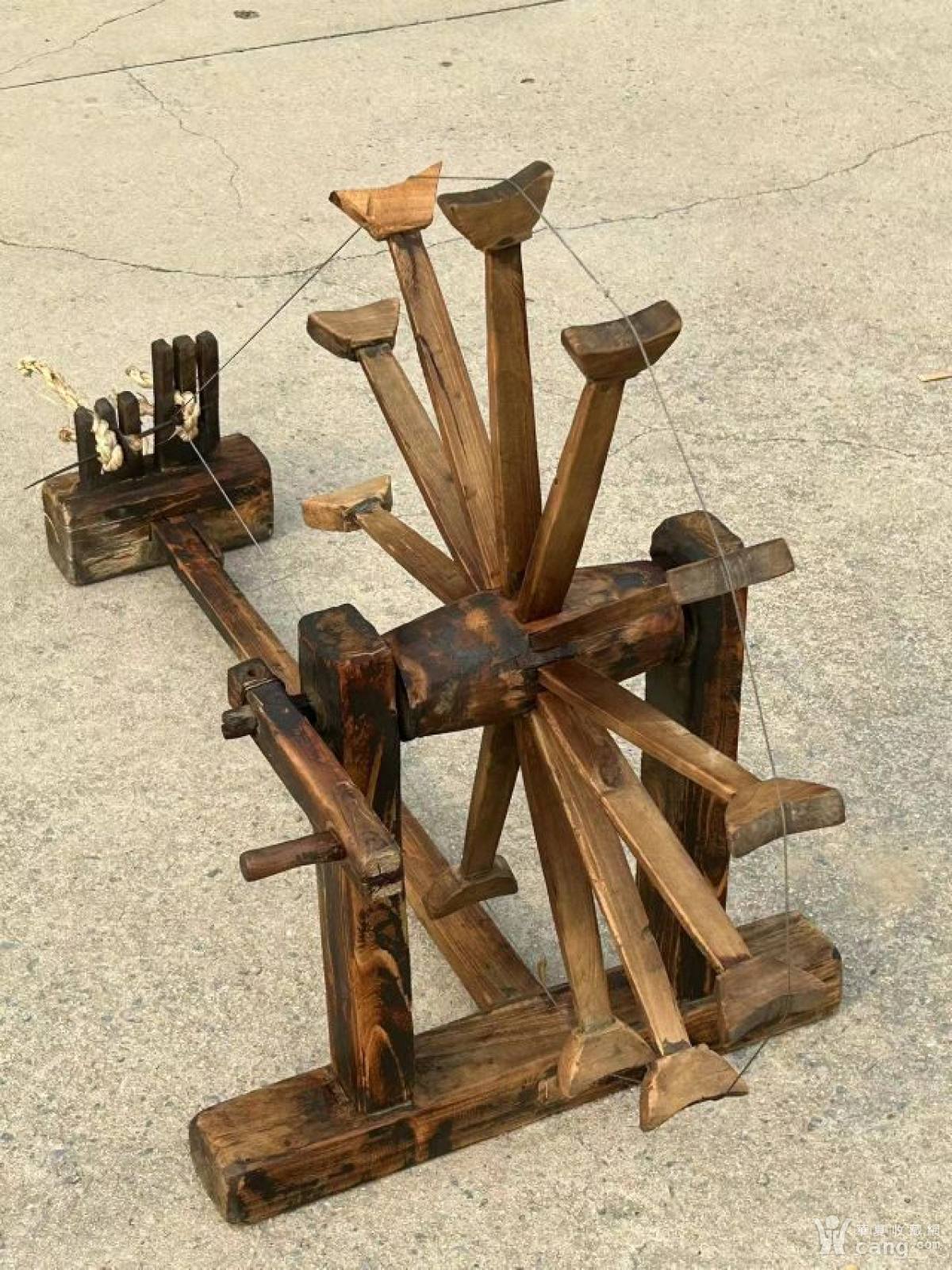 老木制纺线车一套,尺寸如图,保存完整,能正常使用。