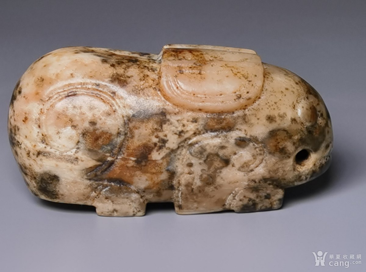 商代沁色局部鸡骨白老玉兔