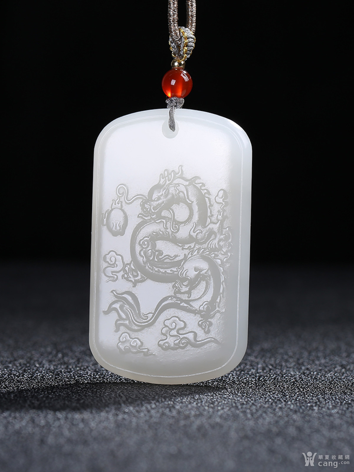 [富贵山居]和田玉白玉烟灰山水生肖龙牌子挂件吊坠g